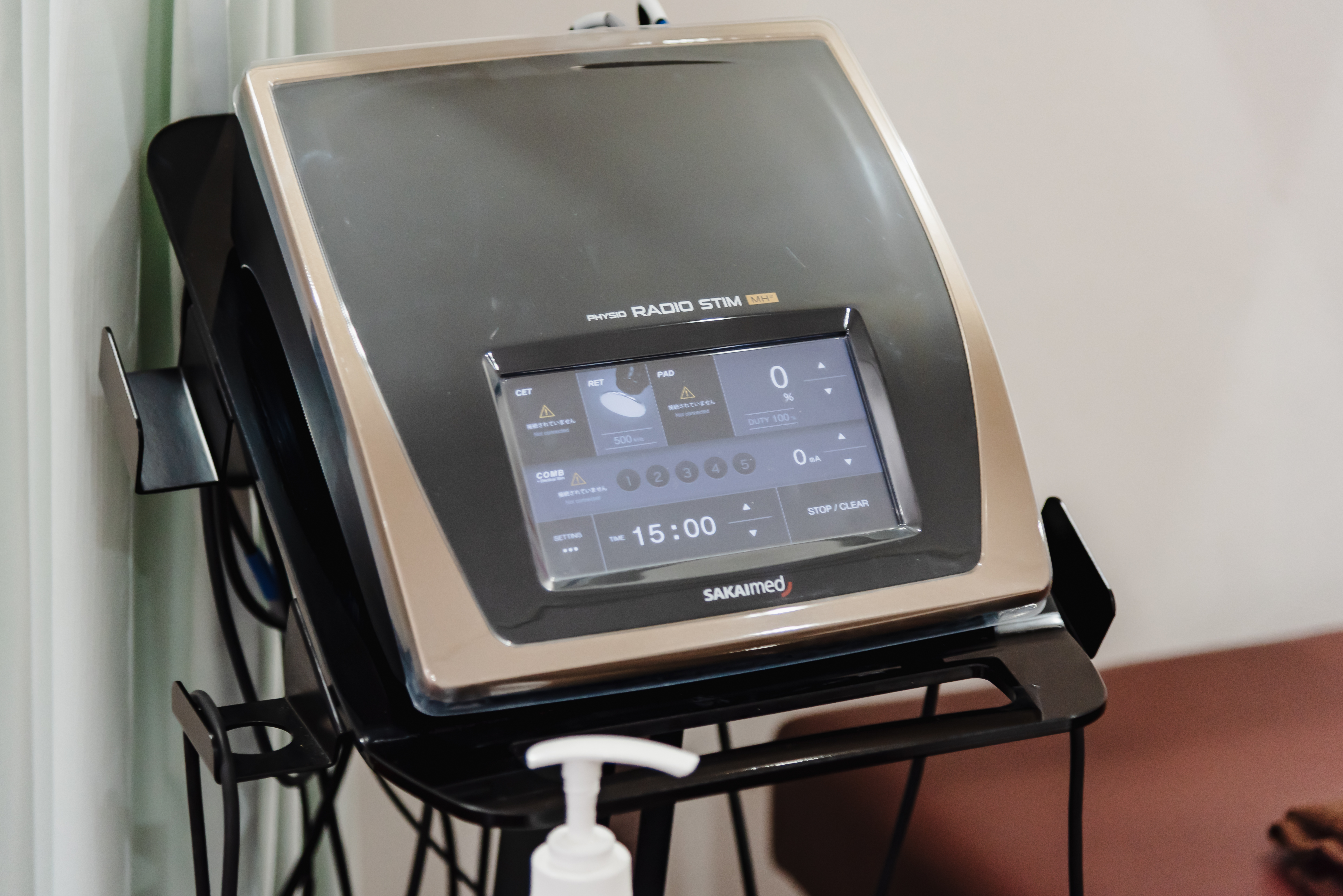 刺激はとてもやさしく、痛みをほとんど感じないため安心して受けられます。骨折、脱臼、捻挫や打撲、関節痛、肩こり、スポーツ障害、交通事故後のリハビリなど、幅広い症状に対応できる安全で効果的な治療法です。