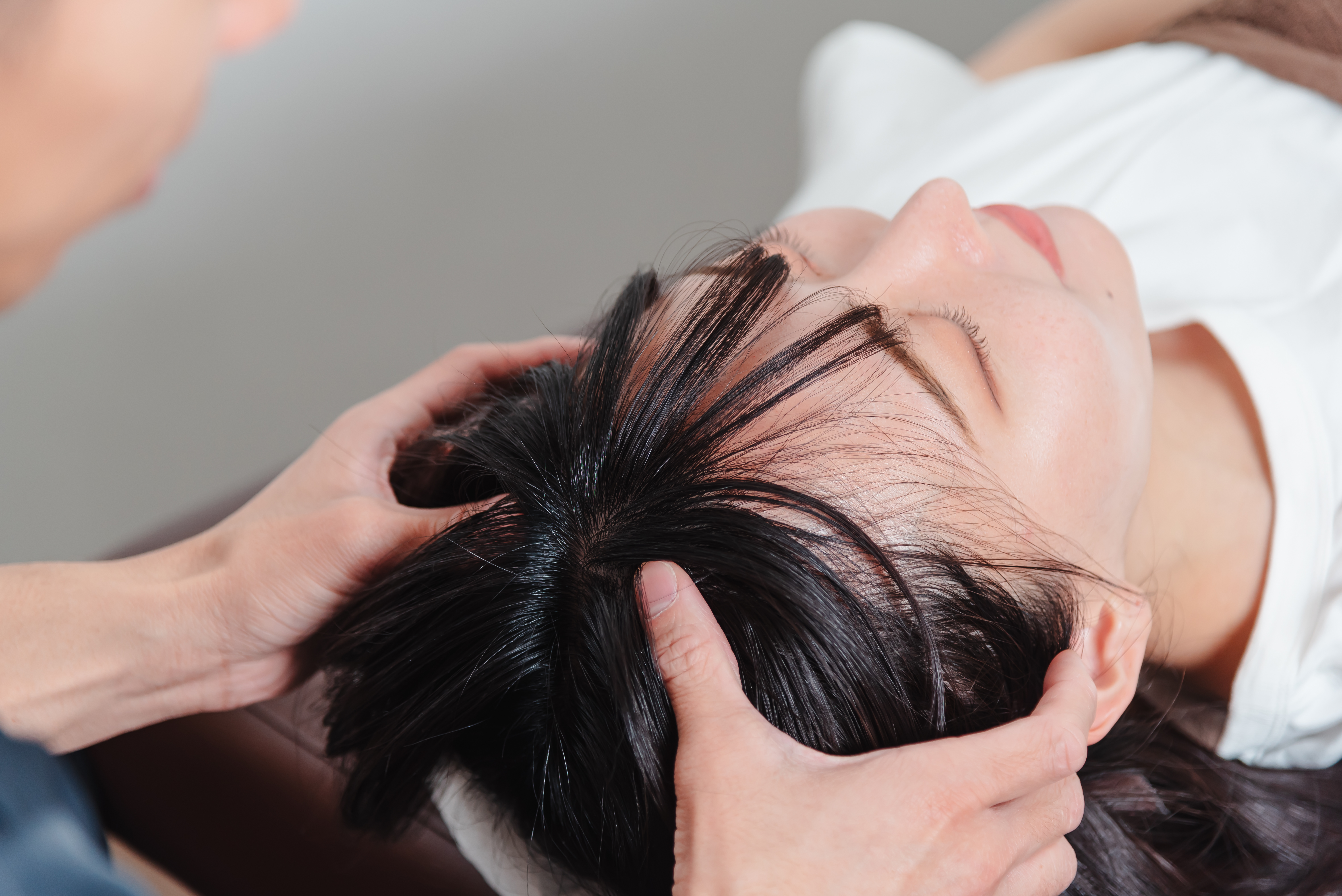 ドライヘッドスパは、頭皮をじっくりもみほぐすことで首や肩の血流を促し、慢性的なコリをやわらげる効果があります。目の疲れや重だるさもスッキリしやすく、頭と顔の皮膚がつながっているため、リフトアップや肌のハリ感アップにもつながります。さらに、一定のリズムで行われる手技が自律神経を整え、心身ともに深くリラックスできるのも大きな魅力です。肩こり・目の疲れ・お顔のたるみ・ストレスケアと、幅広いお悩みにアプローチできるおすすめの施術です。